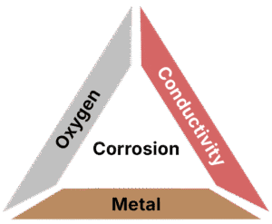 Corrosion is in heating is primarily an electrochemical process where metals reverts to a more stable , oxidised form like rust. It short it is a slow continuous “eating away” of the metal. For this process to occur it require typically 3 elements: